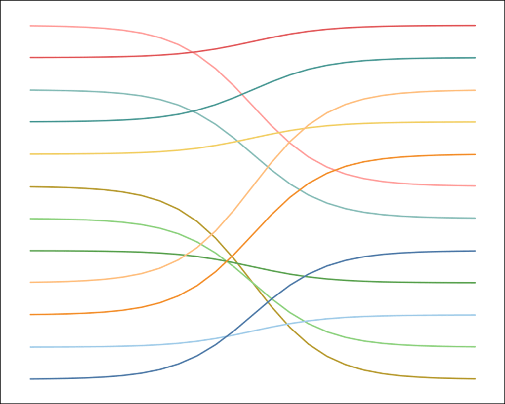 Of the three methods in this post, this is the only one that does not use the Line mark type. The way that this one works is that we are basically stacking a bunch of circles right on top of each other. Each circle is a slightly different size and a slightly different shade of our “base” color. The smallest, and lightest colored circle will be on the top of the stack, and the largest, darkest colored circle will be on the top of the stack.